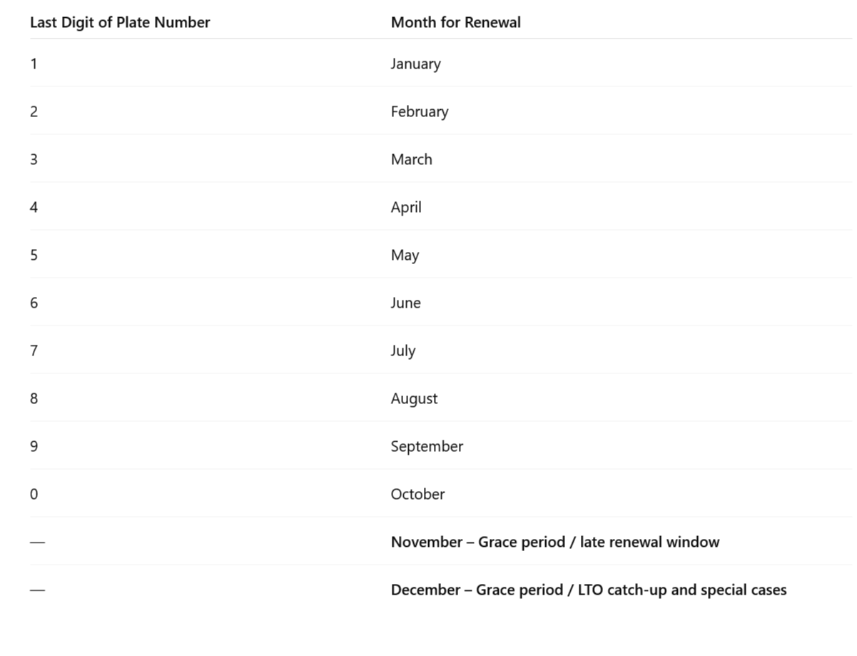 For November and December, the LTO often uses these months as grace periods or catch-up windows for those who missed their scheduled month.