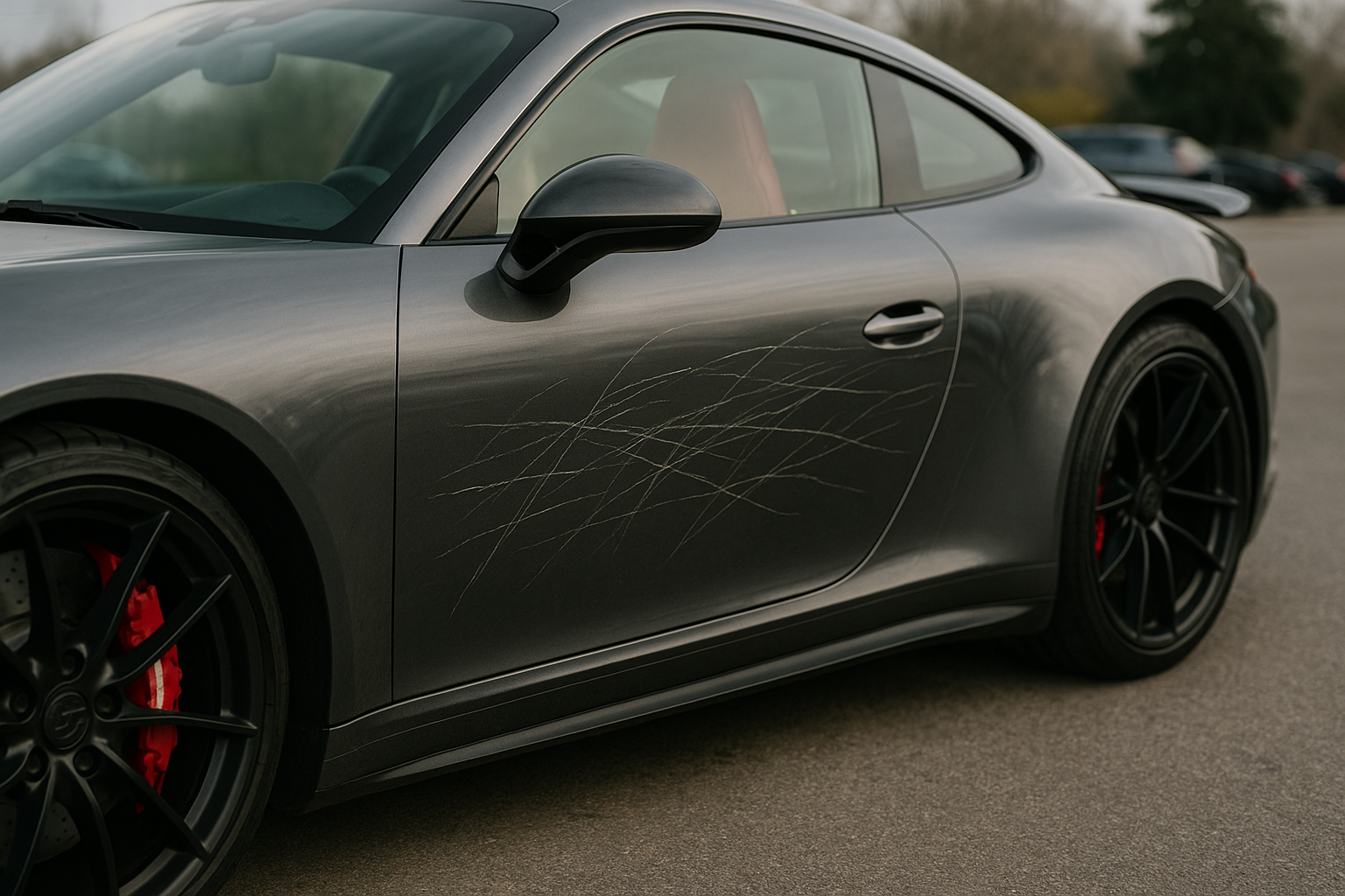 Your car is parked in an overnight car parked and it's keyed with scratches on your doors, this would be covered.